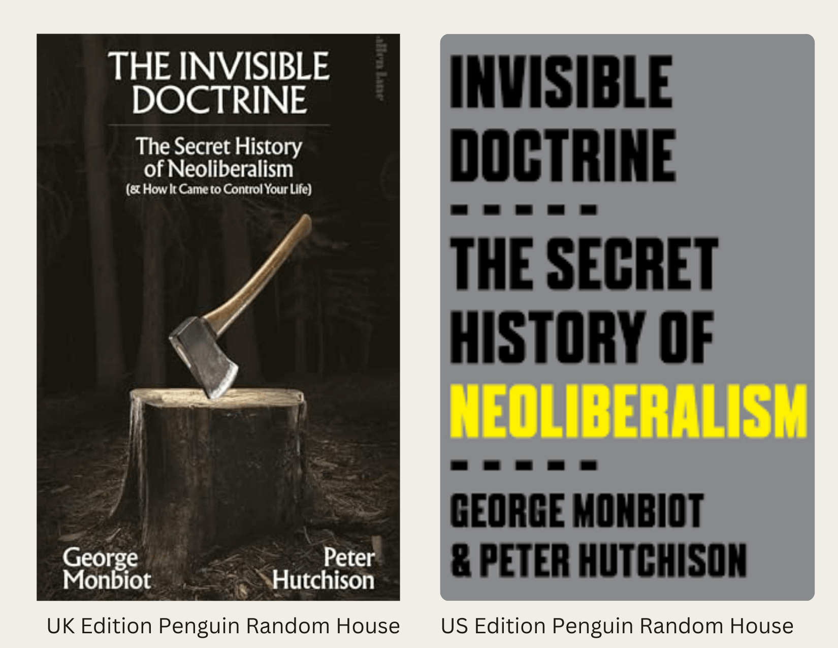 The book to be discussed is a Times UK #1 bestseller, “The Invisible Doctrine: The Secret History of Neoliberalism” with authors George Monbiot & Peter Hutchison.