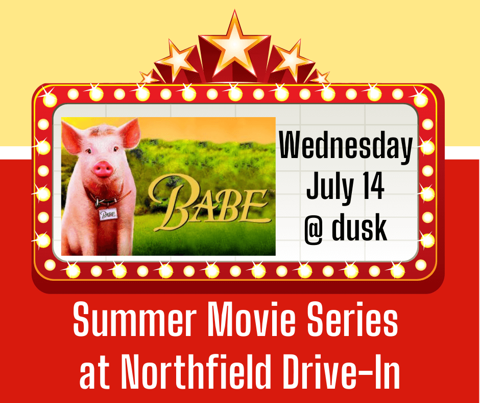Watch “Babe” at the Northfield Drive-in on Wednesday July 14th! Gates open at 6:30, movies begin at Dusk.